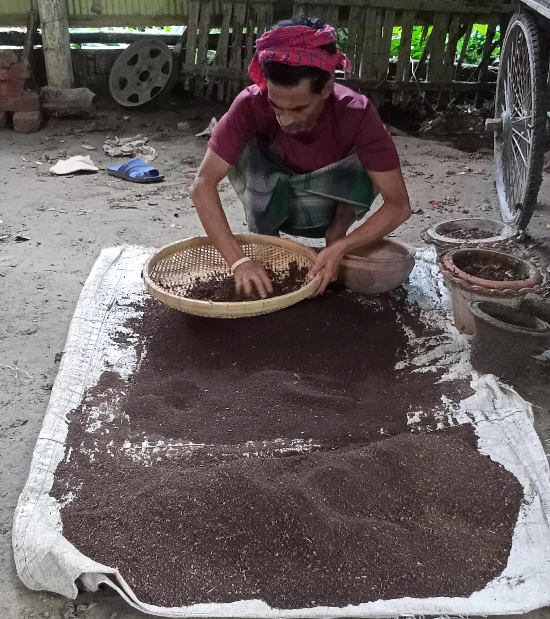 Masud Biswas said, “Vermicompost makes the soil fertile, improves biodiversity, and ensures healthy plant growth. It strengthens soil structure and maintains long-term fertility. Most importantly, it allows us to produce safe food and reduce dependence on the market.” This year, he has used vermicompost to grow spinach, bottle gourd, eggplant, chili, ginger in bags, and medicinal plants in pots.